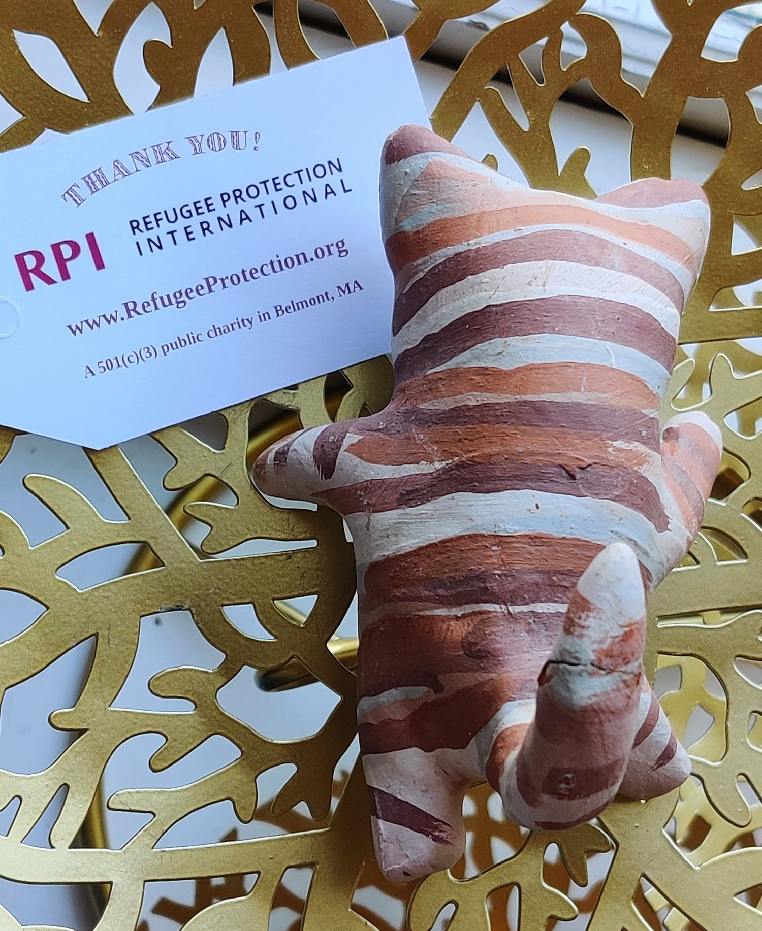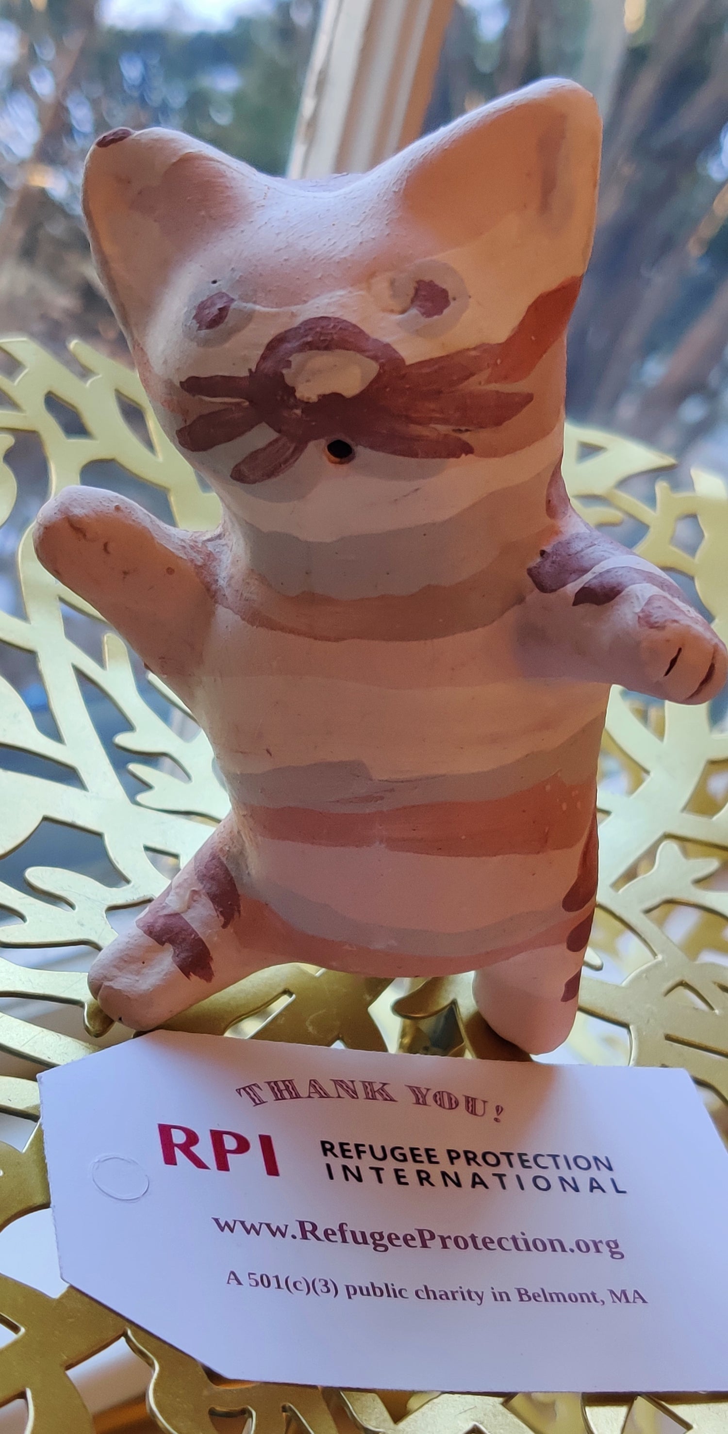 This delightful cat with its charming expressions will captivate you, created with care by women from Ukraine who have been impacted by war. These women have participated in RPI-funded art therapy with a Ukrainian partner, "The Way Home Odesa Charity".