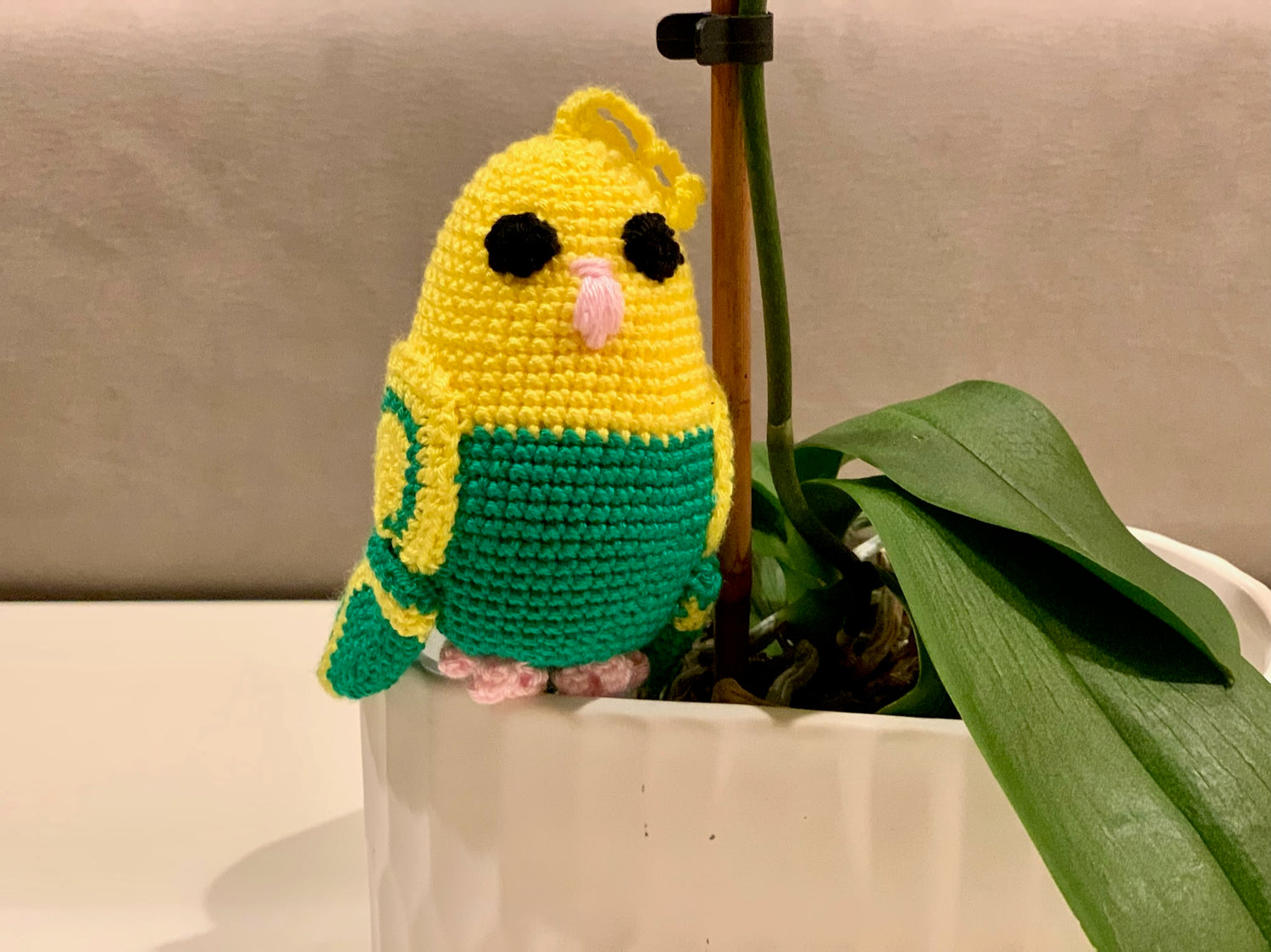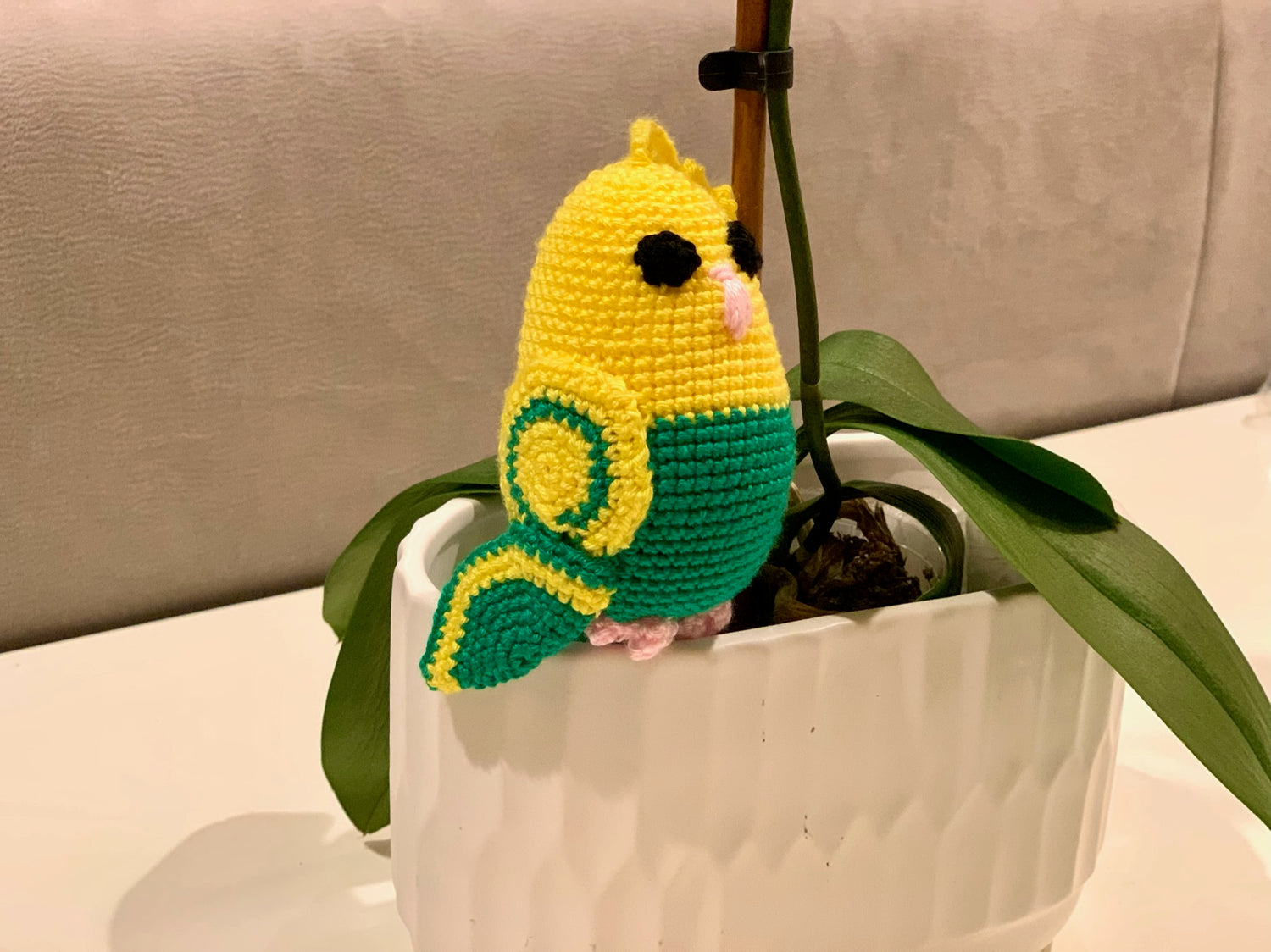 Patterned wings and colorful yarn all come together to make a sweet little bird you’ll want to carry around in your pocket.