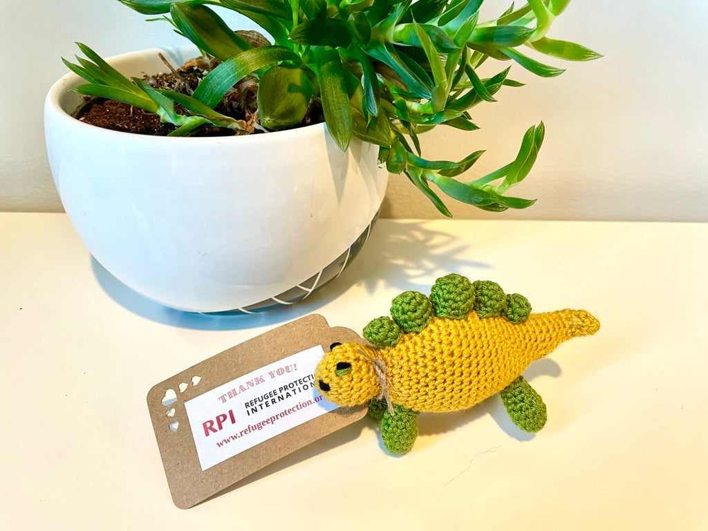 This handmade product is crocheted by Syrian refugee women in Lebanon, where Refugee Protection International supports its refugee-led partner, Multi Aid Programs, to train women in their craft. Proceeds support the women's income and non-formal primary education for their children in the informal tented settlements.