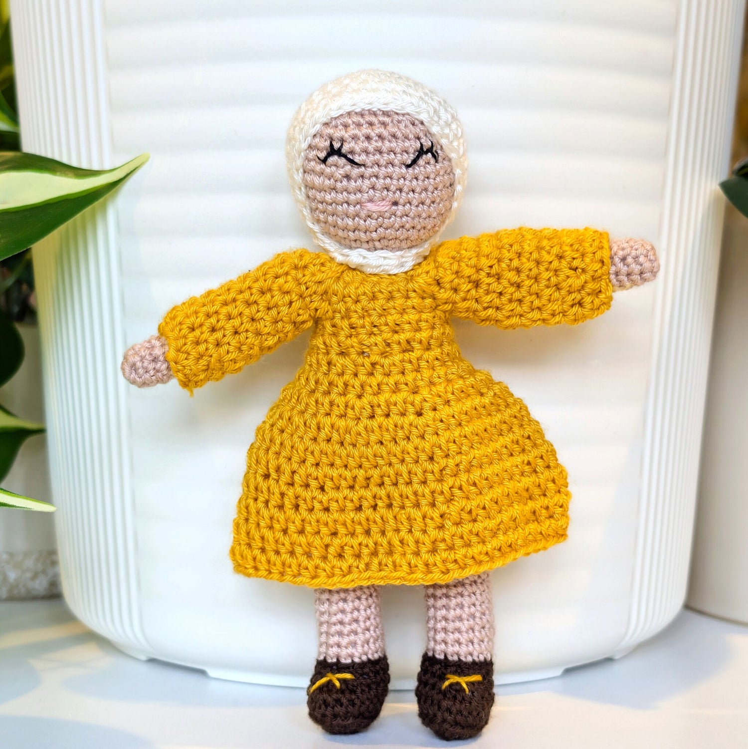Dressed in hijab and a smile, this doll is an elegant refugee-made gift.