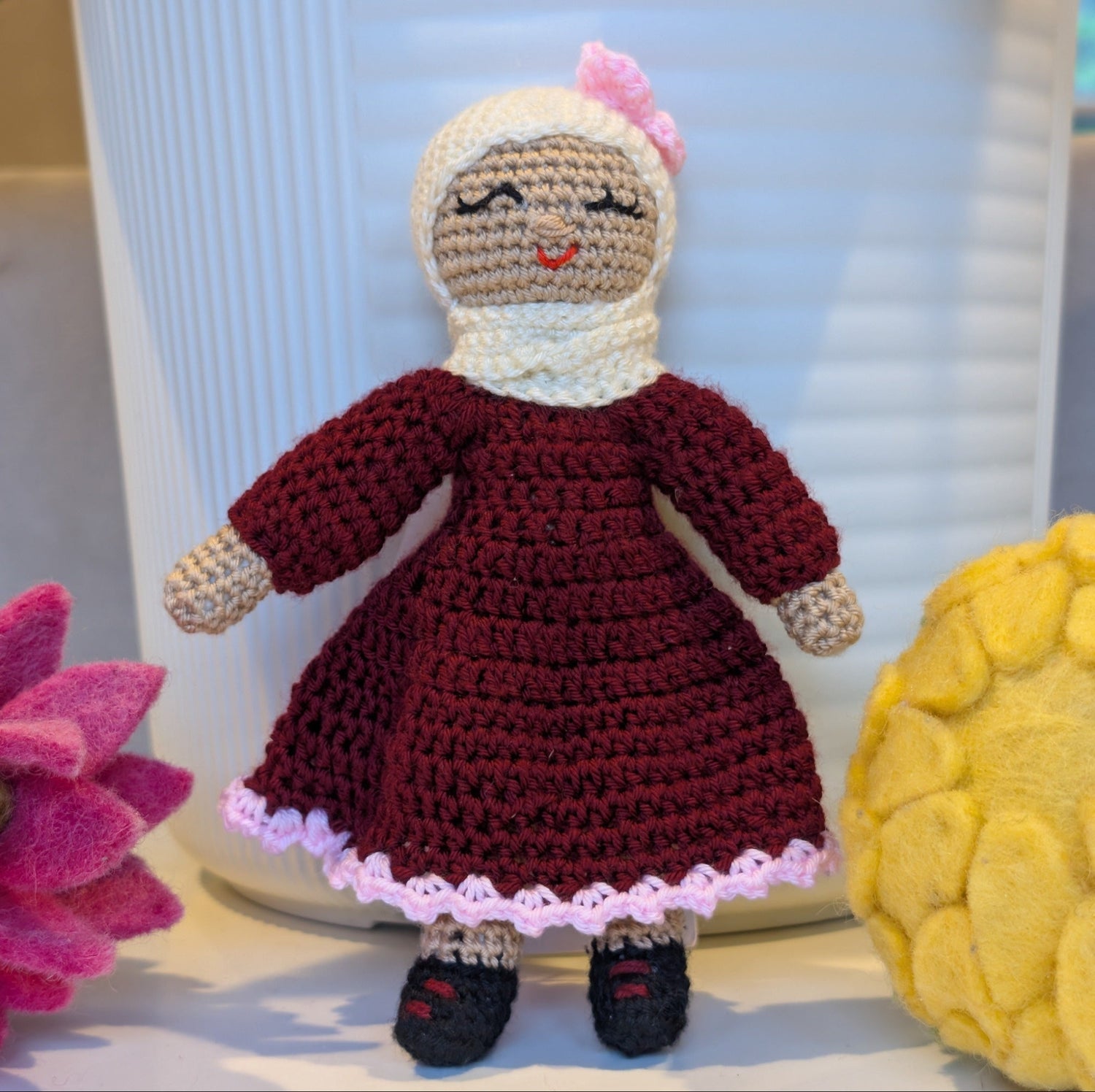 Gracefully dressed in hijab and smile, this doll is elegant in crochet.