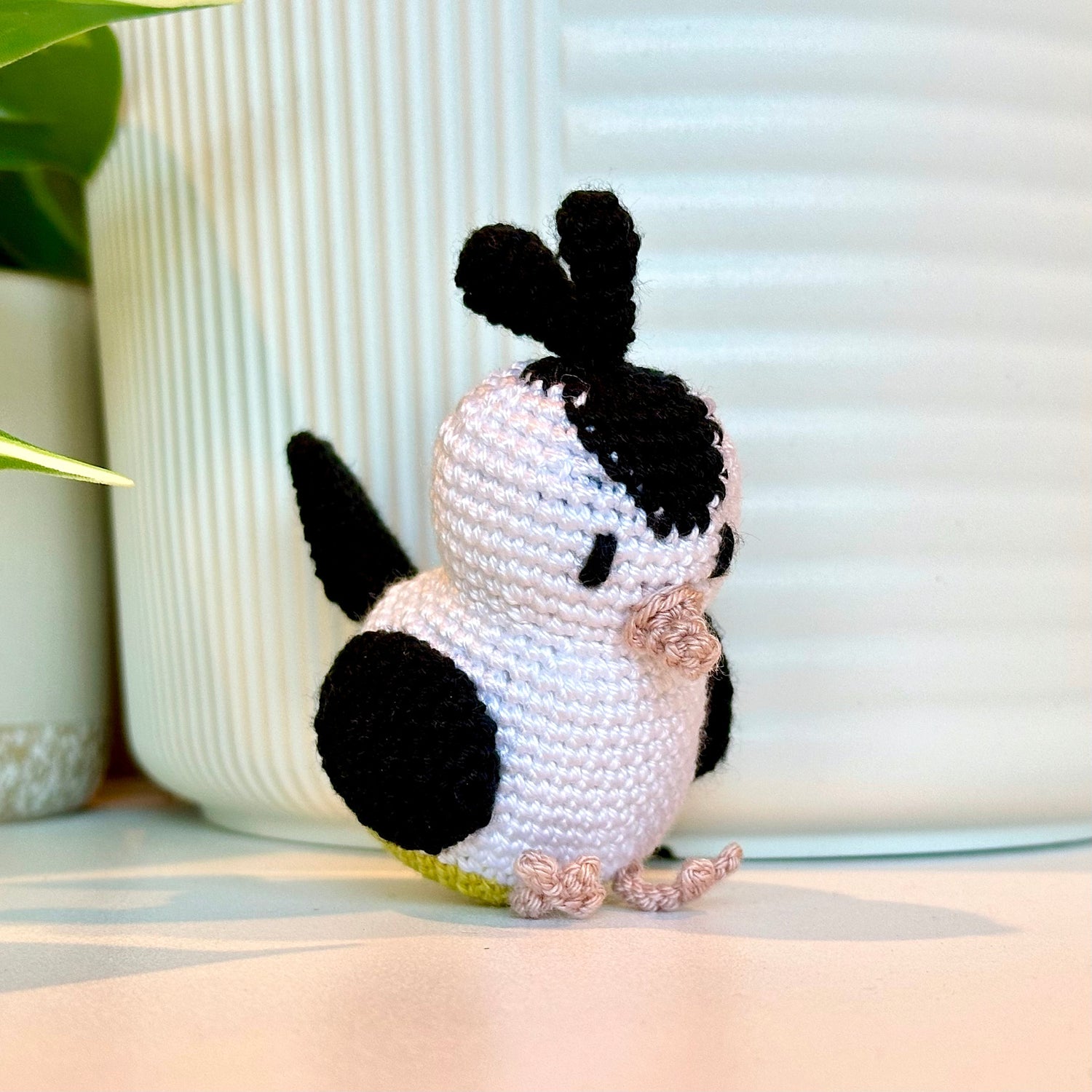 This adorable black and white hoopoe bird will fit snug in the palm of your hand.