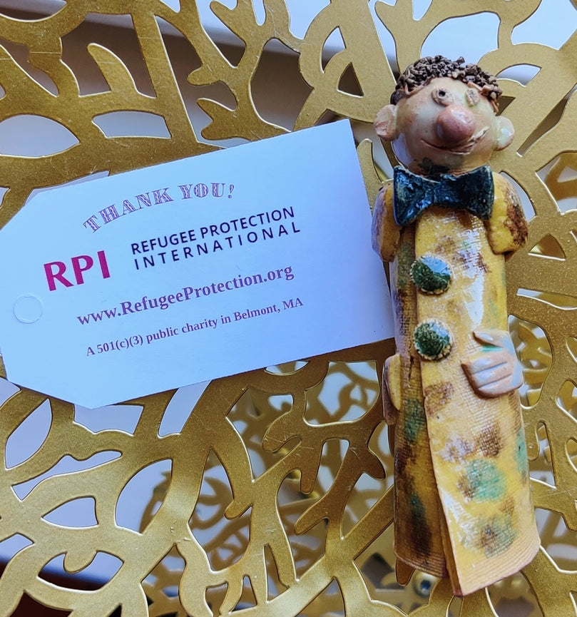 This stylish gentleman is elegantly attired with a charming bow tie, making him an uplifting addition to your home décor. This pottery item has been lovingly crafted in Ukraine by war-displaced women who have been trained in the RPI-funded art therapy program with our Ukrainian partner Odessa Charity Fund "The Way Home."