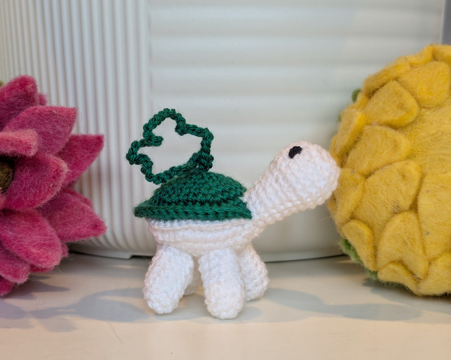 How slow? How steady? This turtle wins smiles, not races. Whether hung on your bag, keychain, cabinet knob or plant, this crocheted item is sure to please.