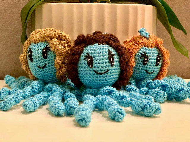Material: Each item is lovingly crocheted with cotton and acrylic yarn and stuffed with cotton.