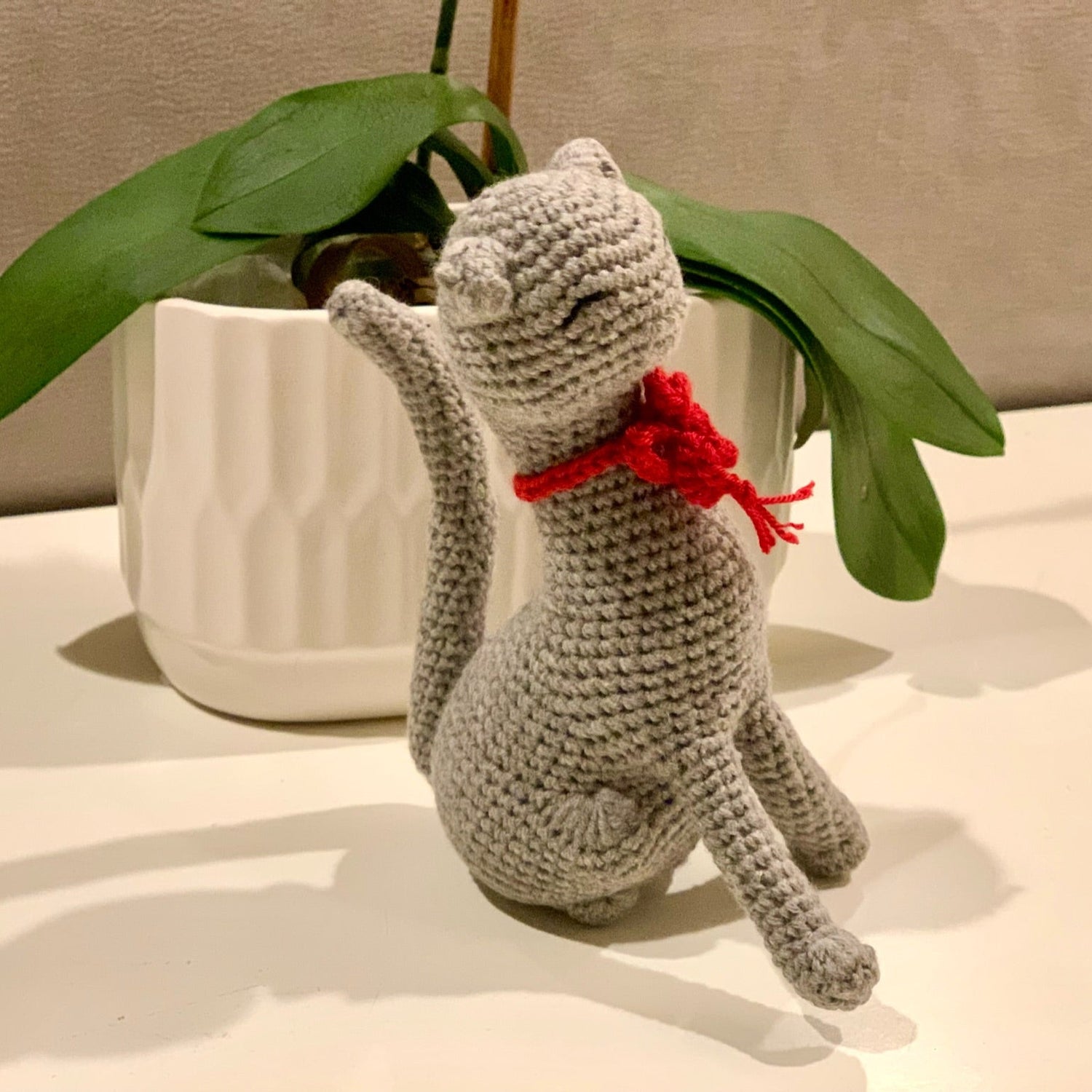 This elegant cat will adorn your shelf and await your return home.